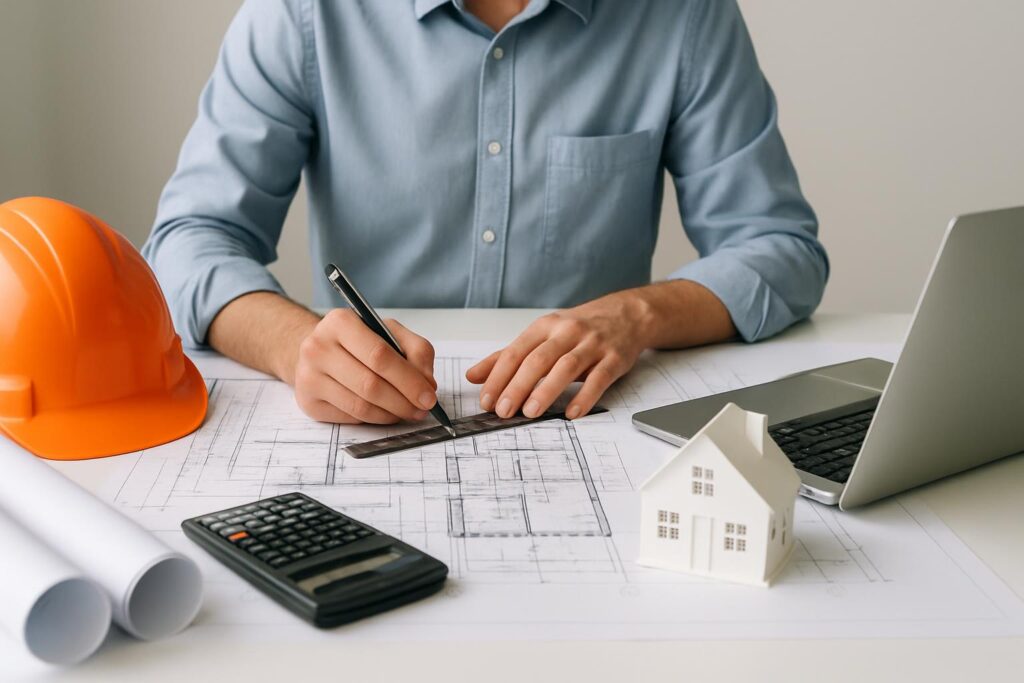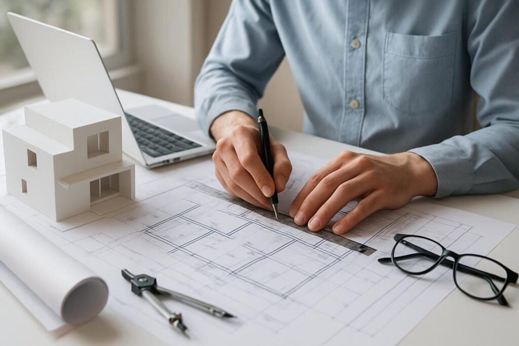 Kohandatud projekteerimine, mis tagab praktilisuse ja vastavuse ehitusstandarditele.